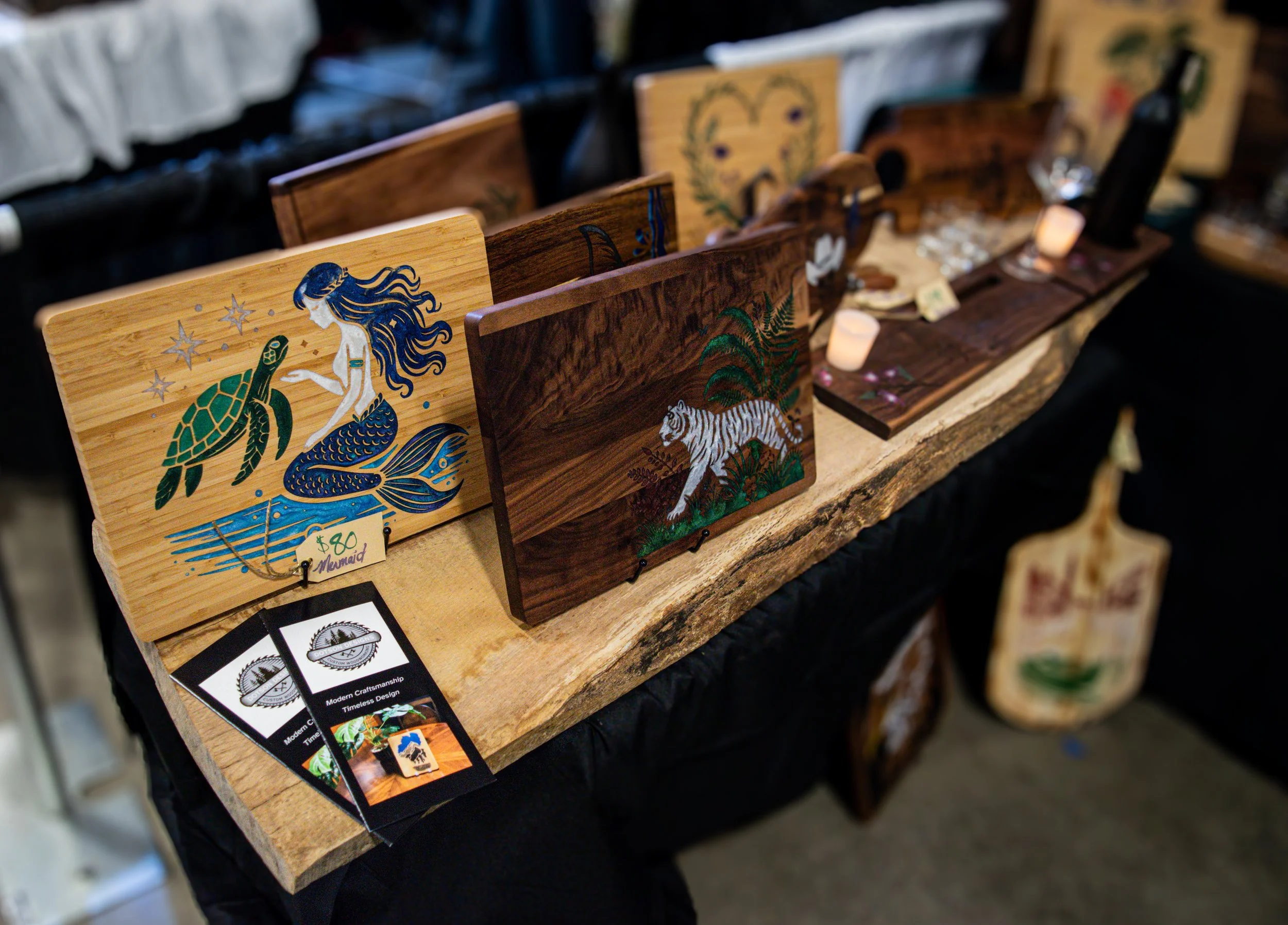 We create one-of-a-kind furniture, home décor, and custom keepsakes—handcrafted with a blend of traditional woodworking and precision machine work, then finished with stunning resin inlays. Each piece is built to last, using premium hardwoods and food-safe, high-clarity resin that highlights the natural grain and adds depth, dimension, and brilliance.